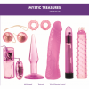 Mystic Treasures Couples Kit. The Mystic Treasures Couples Kit has absolutely everything to keep an adventurous couple busy for weeks and weeks. The kit contains two cockrings, a multi-speed bullet, a pair of transparent oscillating duo balls, a slim butt plug with suction cup base and a 7 inches slimline multi speed vibrator with a veiny penis and nubby shaft tickler tipped sleeve. Phew! Surely enough to uncover the most hidden treasures, mystic or not. Vibrators require 4 AA batteries, not included.