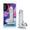 Naturally Yours 6 inches Glitter Cock Sparkling Clear Dildo from Blush Novelties. The Naturally Yours 6 inches Glitter Cock is not another boring dildo. It is crystal like shimmering shaft is adorable and sweet. The Glitter Cock has 4.5 inches of soft insertable shaft fills you up comfortably. It is the perfect body safe sex toy for foreplay, as a sex toy for make fantasy threesome sex or a non vibrating masturbation toy. Whatever your pleasure the Glitter Cock is there for you.