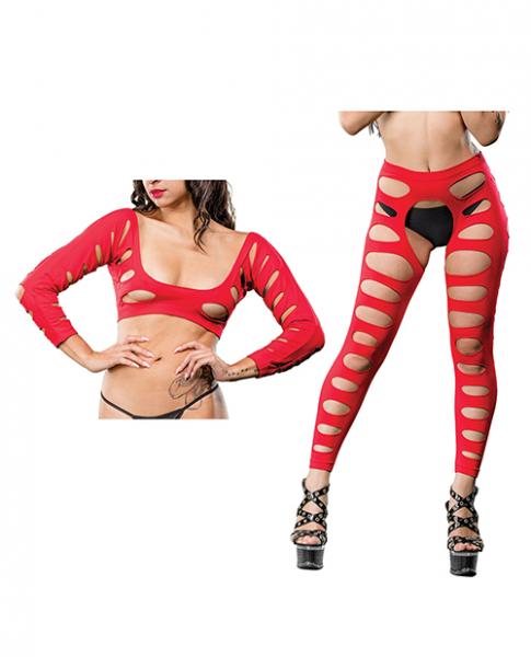 Naughty Girl Sexy Leggings Red O/S from Beverly Hills Naughty Girl lingerie line. Features variegated holes design mesh crotchless leggings. The leggings can also be worn as a top. Please note panty not included.