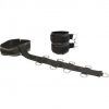 Soft sturdy collar with Velcro closure. Heavy nylon webbing restraint strap with sturdy metal D-rings. Includes 2 neoprene cuffs.