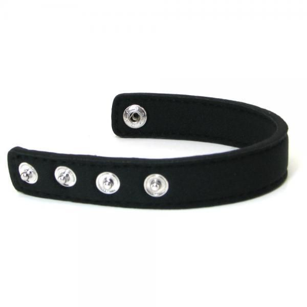 The Neoprene Snap Cock Ring from Perfect Fit. This adjustable cock ring is made of stitched and lined neoprene for ultimate comfort. It features safety snaps so you are not exposed to sharp edges. Also it stretches for that perfect fit every time. From the biggest to the smallest of the 4 snaps. The following measurements are the inner diameter: 2.25 inches, 2 inches, 1.75 inches, 1.5 inches. Full length is 8 inches.
