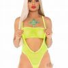 Net and lace strappy halter bodystocking with rhinestone accents. O/S BLACK