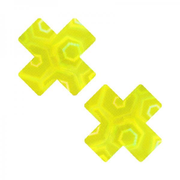 Get ready to light up the night with our Yellow Nuclear Nightmare Trippy 3D Holographic X Nipple Cover Pasties! Made with J Valentine fabric, these pasties are a cosmic blend of fun and flair. Perfect for dancing, festivals, or adding a pop of personality to any outfit. Get ready to turn heads and unleash your inner wild child with these eye-catching pasties!