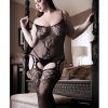 Nightshade Gartered Teddy Bodystocking Black Queen Size from Fantasy Lingerie Sheer Fantasy line. Gartered teddy bodystocking with open crotch panel. Please note panty not included.