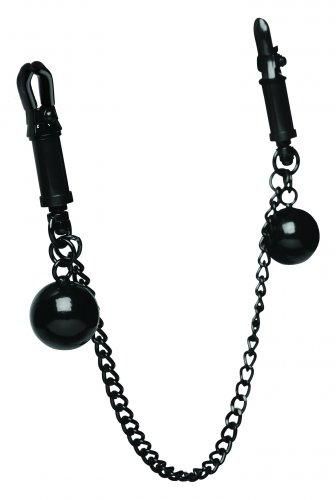 These sadistic clamps offer the framework for a wide array of pleasure play. Featuring 4 ounces dangling weights and a tuggable chain, these clamps are perfect for creating the nipple sensation play you crave. The clamps are highly adjustable via the twisting barrels. No forgiving spring loaded clamps here! Just screw down tight for unrelenting pressure. Rubber-coated tips ensure a good grip and add comfort.