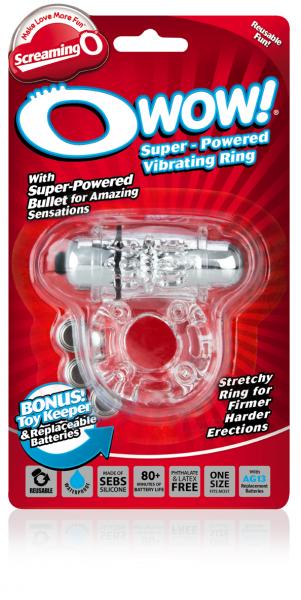 The OWow gives couples the best of both worlds with the most powerful multipurpose couples sex toy on the market. The Screaming O’s infamous super-powered Bullet powers the OWow’s comfortable stretchy erection band, and can each be used separately to create a customized intimate experience with endless erotic options. Use the Bullet separately to tease and titillate and wear the cockring to give him a extra-firm boost in the bedroom – but put them together and have the ultimate versatile cockring with special features specially designed for his and her ultimate pleasure. Super-powered bullet for strongest all-in-one multipurpose vibrating cockring! – The power he needs with the vibration she craves, the OWow offers unmatched stimulation for his and her pleasure! Removable bullet gives couples the versatility they want and the stimulation they crave! – Tease together or play separate, couples can use the Screaming O Vibrating Bullet any way they please! Comfortable one-size-fits-all erection band give him erection-enhancing power to last all night long! – The thicker SEBS band fits members of all sizes and comfortably keeps your erection harder, stiffer and stronger. You’ll be the gift the keeps on giving. Raised pleasure ticklers come alive at the touch of a button for her erotic stimulation! – Extended teasing ticklers vibrate along with the super-powered bullet, enhancing her erotic pleasure and taking it to new heights!