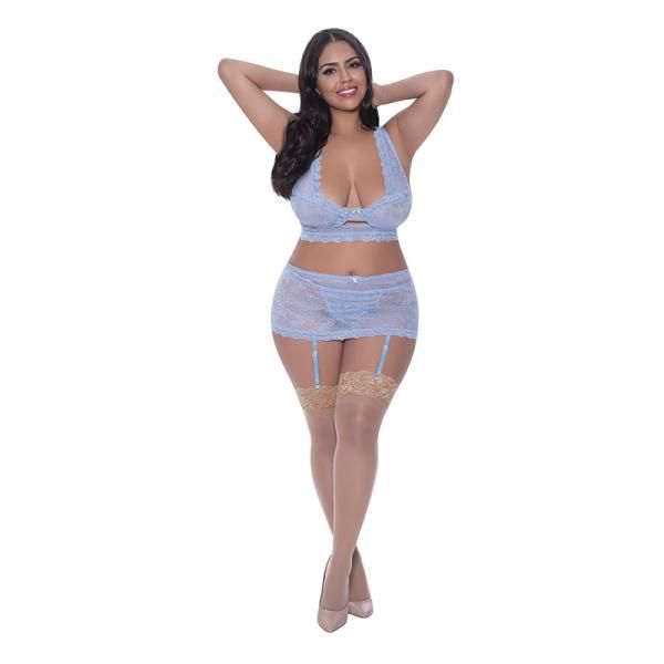 Ooh La Lace Bralette, Garter Skirt & G-string Periwinkle Qn