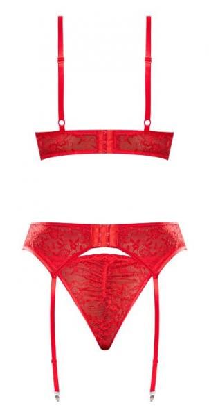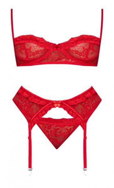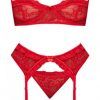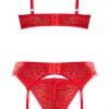 Ooh La Lace Demi Bra Garter & Tanga Red L/xl