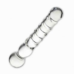 Tickle your fancy with our textured tickler! This artistically crafted glass toy features an easy grip base and raised ridges designed to massage your every curve. Fracture resistant and hypoallergenic, this toy can be easily cleaned. Retains heat and cold for increased stimulation. Compatible with all lubricants.