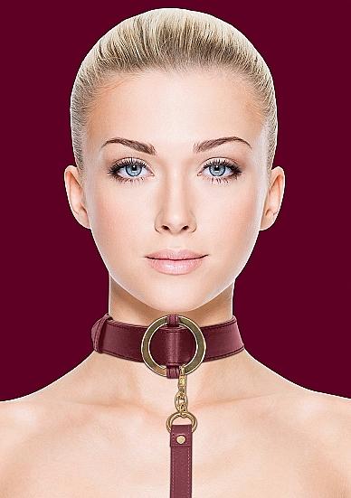 Ouch Halo Collar with Leash Burgundy from Shots Toys.If you are going to follow the rules that were laid out to you, do so in style. The luxurious color, the lovely leather look and beautiful golden decorations make Ouch Halo the most prestigious item in your BDSM kit. Are you ready to play, angel? This beautiful leash and collar set ensures that you take your sub to the place you want in style! Come here, now! With just enough length for movement, this offers wonderful control over your sub. Enjoy the feeling of power and experience an event full of wonderful erotic pleasure. The beautiful Ouch Halo is perfect for a nice exciting session! Dimensions package3.54 inches by 1.97 inches by 6.69 inches. Weight package5.11 ounces. Product dimensions leash 43.31 inches by 1.38 inches. Collar 22.24 inches.