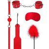 Ouch! Introductory Bondage Kit number 4 Red from Shots Toys. Have you fantasized about a sexy game of submission and dominance? Then this will be the perfect start for you! Make sure your love slave listens to your every instruction while you tease and seduce them.