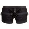 Measurements: Dong measures 7 inches in total length, 6 inches insertable, 1.37 inches at greatest diameter. O-ring measures 2 inches in width. Harness is 31 inches in circumference, unstretched. Materials Leather, metal, rubber, elastic. Color Black. Note includes dildo and harness.