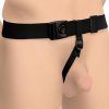 Train your backdoor and stimulate your prostate at the same time! With this prostate plug set and harness you can wear a small, medium or large prostate plug for hours and hours with no trouble at all! Want to be able to take larger sizes and keep a plug in longer? Start small and work your way up! Each of the three plugs are made of premium silicone so they are phthalate-free and body-safe; use only with water-based lubricants for best results. The plugs attach to the harness so you can easily keep it in place as you go about your day and do other activities. The harness itself is easy to adjust, comfortable, and has a wide elastic waistband with a buckle in front to close it. First, choose which of the three plugs you’re going to use. Then attach the plug to the harness and apply lots of water-based or oil-based lubricant to help glide the plug in. You can’t use too much lube when anal training, so don’t worry about using a lot! Once you’ve inserted the tip, slowly push the rest in at your own pace; be patient, relax, and feel free to touch or massage yourself so you open up more easily. Once inside, allow yourself to adjust and move around, and then slide the straps up over your legs and waist. Adjust each strap for comfort and enjoy! After wearing it for as long as you’re comfortable, push the plug out using your anal muscles and clean the toy with warm water and mild soap, then spray with a toy cleaner and wipe dry. Store separately from other non-anal toys and do not store with other silicone toys unless there is a barrier between them. Measurements: Waistband adjusts from 13 inch to 24 inch circumference, unstretched. Crotch strap adjusts up to 25 inches in length. Small plug: 3 inches insertable, 1 inches widest diameter. Medium plug: 3.5 inches insertable, 1.2 inches widest diameter. Large plug: 4 inches insertable, 1.3 inches widest diameter. Materials: Silicone, nylon, POM plastic Color: Black Note: Do not use silicone lube with silicone plugs.