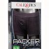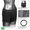 Discreet 2 panel design to accommodate dual penetration. Reinforced O-ring stretches to accommodate most packers, dongs or probes. Stretchy and comfortable with soft lining. Internal strap to secure your packer in place, packer not included. Internal pockets to add a favorite stimulator, not included. Washable.