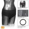 Discreet 2 panel design to accommodate dual penetration. Reinforced O-ring stretches to accommodate most packers, dongs or probes. Stretchy and comfortable with soft lining Internal strap to secure your packer in place, packer not included. Internal pockets to add a favorite stimulator, not included. Washable.