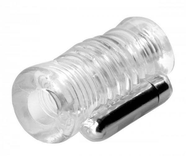 Stroke into overdrive! Ergonomically designed to fit in the palm just right, and contoured inside and out for a powerful finish. The interior is tight enough for great friction, and contains ultra satisfying ribbed inner texture for enhanced sensations. The Vibe Tube is made of clear, ultra stretchy Thermoplastic Rubber TPR, so it conforms to your rod and comes equipped with a powerful vibrating bullet, for sizzling sensation with every stroke. This clear stroker is lightweight and travel friendly, perfect for the man on the go! Measurements 5.5 inches in total length, 2.25 inches in diameter. Materials Thermoplastic Rubber TPR, ABS plastic. Color Clear. Please note requires 3 tab batteries, included. Shown on a dildo, not included.
