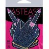 Pastease Glittering F*ck You Lady Hands from Pastease Brands. Middle Finger Pasties Glittering F*ck You Lady Hands Nipple Covers by Pastease. Hand made in the USA of soft form fitting material that forms seamlessly to curves and resists wrinkling over hardening nipples. Easy to apply. Just peel and stick on clean, dry skin. All Pastease Brands feature latex free, medical grade, waterproof adhesive that stay securely in place for as long as you like and until they are gently removed. Conceal or reveal with Pastease Brands nipple pasties when worn with a sexy outfit, daring bikini, sheer top, revealing dress, Hefty bag, body lotion, crazy costume, party theme or nothing at all! Dimensions: 2.8 inches by 4.7 inches. Coverage diameter: 2 inches. Pastease are the fun maker that brings out your inner Tease! All Pastease products are hand made, so the finished product you receive may vary slightly from the posted image. Go get your sexy fun freedom On! XOXO Pastease! Categories: Lingerie, Clothing, Sexy Costume Accessories, Valentine’s Day, Pasties and Accessories. Restricted, Amazon Restricted. 2022.