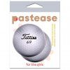 Golfball Pasties Titties Logo Golfing Nipple Covers by Pastease Brand. Introducing our Titties 69 Golf Ball Pasties because golf is about to get a whole lot more playful! These pasties are not just for your everyday golf game. They are a whimsical and cheeky way to add some spice to the course. Crafted on a luxuriously soft matte material, they are the perfect blend of comfort and good vibes. Here is what makes them a must have. Soft to the Touch. Experience the ultimate comfort with our soft matte material, ensuring a feel that is softer than a well hit golf ball.Medical Grade Adhesive. Our pasties feature a latex free, hypoallergenic adhesive because who wants to deal with allergies when they are scoring a hole in one? Waterproof and Sweat Proof. Designed to with stand the elements, these pasties are both waterproof and sweat proof, because golf can get intense, and so can the weather. Reusable with Pastease Refills. Sold separately. Extend the joy! These pasties are reusable up to 3 times with Pastease Refills, because good vibes are worth repeating. Dimensions: 2.5 inches by 2.5 inches.