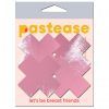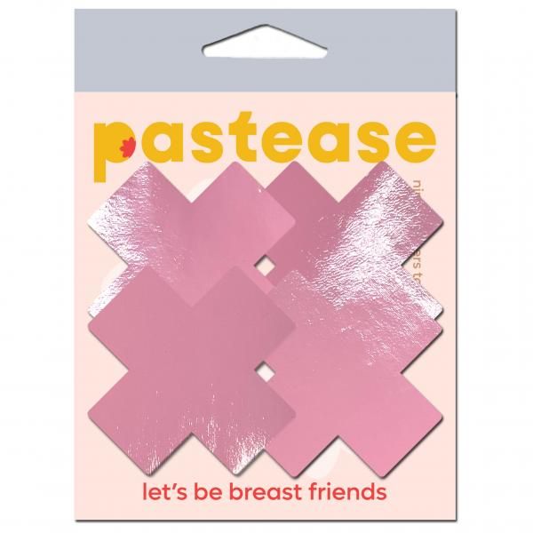 Petite Plus X Two Pair of Small Latex Baby Pink Crosses Nipple Pasties by Pastease. Petite Plus X: Two Pair of Small Shattered Glass Disco Ball Glitter Pink Cross Nipple Pasties by Pastease are hand made in the USA of soft form fitting material that forms seamlessly to curves and resists wrinkling over hardening nipples. Just peel and stick on clean, dry skin. All Pastease feature latex free, medical grade, waterproof adhesive that stay securely in place for as long as you like and until they are gently removed. Conceal or reveal with Pastease Nipple Pasties when worn with a sexy outfit, daring bikini, sheer top, revealing dress, Hefty bag, body lotion, crazy costume, party theme or nothing at all! Includes Two (2) Pair.