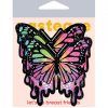 Pastease Trippy Butterfly Melt Rainbow Glitter Pasties. Butterfly Melt Trippy Glitter Rainbow Nipple Pasties by Pastease are hand made in the USA of soft form fitting material that forms seamlessly to curves and resists wrinkling over hardening nipples. Just peel and stick on clean, dry skin. All Pastease Brand Pasties feature latex free, medical grade, waterproof adhesive that stay securely in place for as long as you like and until they are gently removed. Conceal or reveal with Pastease Brand nipple pasties when worn with a sexy outfit, daring bikini, sheer top, revealing dress, Hefty bag, body lotion, crazy costume, party theme or nothing at all! Dimensions 3.3 inches by 3.2 inches. Coverage diameter 1.8 inches. Pastease Brand Pasties are the fun maker that brings out your inner Tease! All Pastease products are hand made, so the finished product you receive may vary slightly from the posted image. Go get your sexy fun freedom on! XOXO Pastease! Categories: Lingerie, Clothing, Sexy Costume Accessories, Pasties, Accessories. Restricted, Amazon Restricted. 2022.