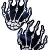 Pastease White Skeleton Hands Pasties. White Boney Skeleton Hands on Black Nipple Pasties by Pastease. White Boney Skeleton Hands by Pastease are hand made in the USA of soft form fitting material that forms seamlessly to curves and resists wrinkling over hardening nipples. Easy to use. Just peel and stick on clean, dry skin! All Pastease feature latex free, medical grade, waterproof adhesive that stay securely in place for as long as you like and until they are gently removed. Conceal or reveal with Pastease nipple pasties when worn with a sexy outfit, daring bikini, sheer top, revealing dress, Hefty bag, body lotion, crazy costume, party theme or nothing at all! Dimensions 4.5 inches wide by 3.7 inches tall. Coverage diameter 2.5 inches. Pastease are the fun maker that brings out your inner Tease!