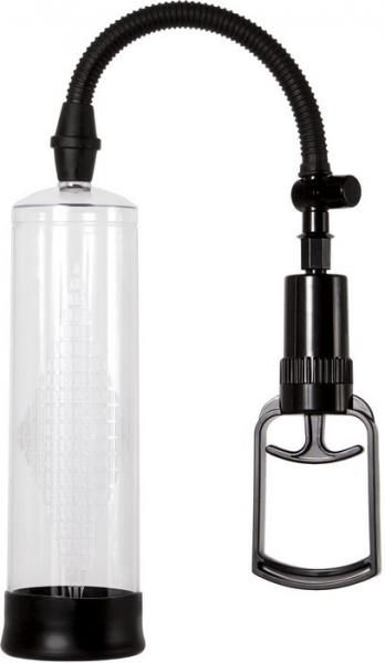 A Performance Pump from Evolved Novelties. For harder, thicker erections. Increase blood flow to your penis. Comfortable soft silicone insertion sleeve at the bottom of the base. Manual pull handle gives you full control. Ergonomic grip for precise handling. Sturdy crimp free air hose. Measure progress with measurements on tube. Clear tube made of hard plastic. Pump cylinder size 8.66 inches by 2.71 inches. Product comes with a 5 year warranty.