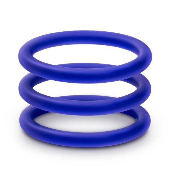 Performance VS1 Pure Premium Silicone Cock Rings Medium Indigo Blue from Blush Novelties. Perform like a porn star with our pure premium silicone cock rings from Performance, a brand you can trust. Stay harder and longer with these male enhancement rings that are a blend of taut and stretchy. It can be stretched up to twice its original diameter. With 3 rings to use, wear 1 to increase your sexual stamina or wear multiple cock rings around your cock. Or share them with your partner.