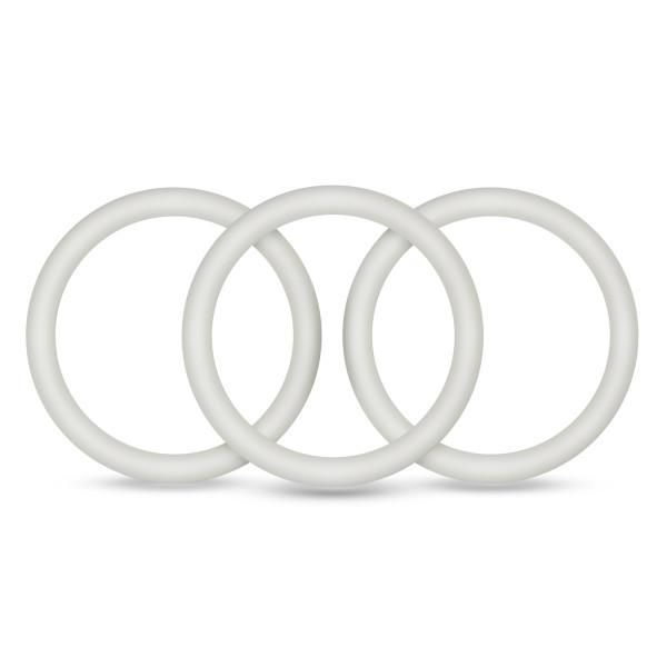 Performance VS3 Pure Premium Silicone Cock Ring Large White 3 Pack 3 same size Rings. Perform like a porn star with our pure premium silicone cock rings from Performance, a brand you can trust. Stay harder and longer with these male enhancement rings that are a blend of taut and stretchy. It can be stretched up to twice its original diameter. With 3 sizes to choose from for the perfect fit, wear 1 to increase your sexual stamina or wear multiple cock rings around both your cock and balls.