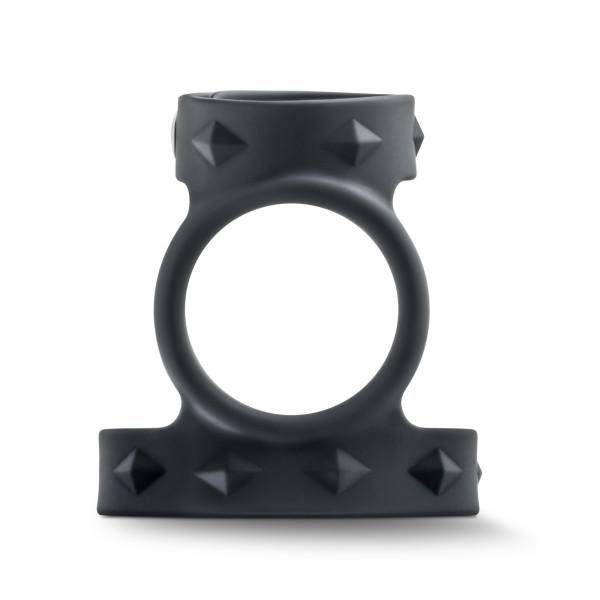 Performance VS8 Silicone Double Cock & Ball Strap Black from Blush Novelties. Extend your pleasure and your erectile power with this simple, smooth Silicone 3 snap cock strap. Easy to put on, easy to release; simply snap it around the base of your cock. The flat, stretchy, comfortable, body safe silicone stays where you put it and holds your engorgement. The 3 snaps allow for universal fit and ensure both stamina and extended partner play. Stay harder longer and enjoy a more intense orgasm. Nickel free hardware. Wash with warm, soapy water.