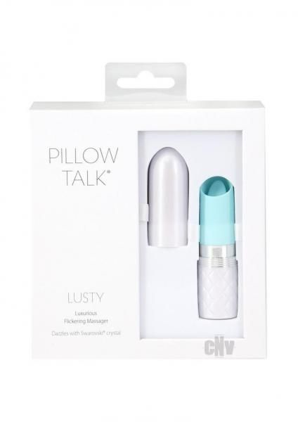 Description Pillow Talk® invites you to feel Lusty! Key Features: High-Grade Silicone Finish Flickering Clitoral Stimulation Incremental Speed Control Dazzles with Swarovski® Crystal Powered by PowerBullet® Compact and Discreet Design Travel Lock Easy to Clean Magnetic USB Rechargeable Charge Time: 2 Hours Up to 65 Minutes of Playtime Dimensions: Length: 3.5 in. Width: 1 in. This compact and discreet clitoral stimulator is your powerful little secret. The outside may look like a simple lipstick tube, but inside is a tantalizing tickling vibrator that`ll give you toe-tingling sensations. Feel the firm, flexible tongue flicker over your clitoris as the deep vibrations send waves through your quivering body. You`ll be gasping for air and gripping the sheets as each nerve ending gets the attention it deserves. The smooth, seductive silicone is safe for your body and an easy one-button control lets you increase the speed and intensity of the powerful PowerBullet® rumbles, simply by holding it down. The dazzling Swarovski® crystal set in the button adds a glint of glamour to your passionate playtime. The three-press travel lock system means your travels won`t be disturbed by unwanted vibrations. The convenient storage pouch and USB charging cable lets you play whenever, and wherever, passion strikes. Use the included cleaning brush along with soapy water or a toy cleaner before and after every use. Add a splash of your favourite water-based lubricant for a slippery, slick sensation. Let Lusty take you on a tantalizing trip to bliss!