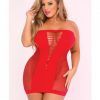Pink Lipstick V-Plunge Seamless Mini Dress Red 1X/2X