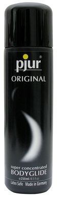 Pjur Original Lubricant 250ml e or approximately 8.5 ounces. Pjur Original Bodyglide provides extra long lasting lubrication for massage. Pjur Original Bodyglide provides extra long lasting lubrication for massage. Pjur Original concentrated silicone personal lubricant is compatible with latex, polyurethane, and polyisoprene condoms. Original provides ultra long lasting personal lubrication. Enhances the comfort and pleasure of intimacy. May also be used for massage and skin conditioning. Only a few drops are needed. Never gets sticky or dries out. Leaves your skin soft and smooth. Non-irritating for the vaginal mucous skin. Does not block pores. Product is not made with fats, fragrances, paraben, preservatives or water. Neutral taste and odor.