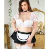 Lace Top with Built-In Bra, Apron Skirt, G-String Panty with Detachable Lace Leg Garters & Ruffle Choker