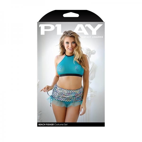 High-Neck Halter Top, Ruched Side Tie Skirt with Tulle Trim, G-String Panty & Matching Shell Pasties