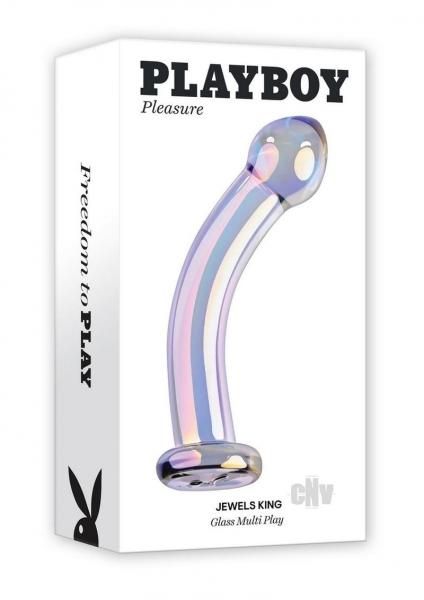 Introducing the Jewels collection, destined to be a favorite in your sex toy drawer. The Jewels King commands your attention with its impressive size and invigorating curve. The bulbous teardrop head with a tapered tip makes anal and vaginal insertion comfortable and easy. Explore the length of the smooth shaft and the firm and pleasurable G-Spot or P-Spot stimulation. Made of body-safe borosilicate glass, this Multi Play toy shimmers with a crystal iridescent finish and the flared safety base features the Rabbit Head Design. Experience temperature play by immersing the toy in warm or cool water before use.