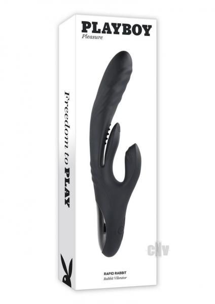 Rapid Rabbit offers a trio of delights designed to bring you endless pleasure effortlessly. Explore the 3 thrusting speeds of the perfectly curved shaft, the 10 uniquely stimulating speeds of the flapper shaft, and the 7 powerful clitoral sensations in the external stimulator. Made of velvet-smooth silicone, discover new pleasures with this unique Rabbit Vibrator.