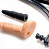 Just place the rubber sole stopper against the floor or a wall, get your chosen dildo into position, and bounce the spring loaded handle! It is easy to manage the speed and depth of thrusting as your grip the handles in ecstasy! Two dildos are included, one realistic and one for your ass, and their height is adjustable via a simple knob system. Clean with mild soap and warm water.