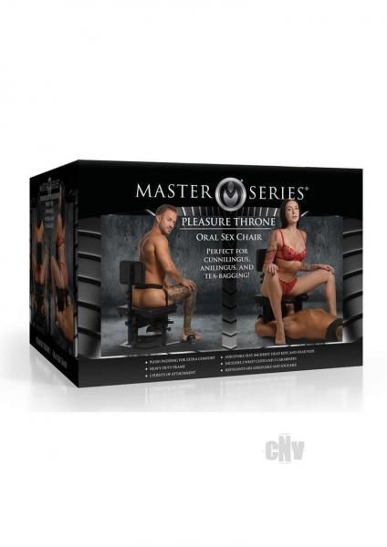 Sit on a plush throne fit for a Queen or King while you get worshiped from below! This Pleasure Throne is designed for everyone! Built out of sturdy iron, it can handle up to 265 lbs. Slide your partner’s head below your seat and let them give you the attention you desire! Perfect for cunnilingus, analingus, teabagging, or other kinky activities, the derriere and private areas can be suspended just out of reach, or they can be lowered down to sit right on their face! Designed to be fully adjustable so you can enjoy the perfect, ergonomic position for you and your partner, the backrest and seat are adjustable in height for the one sitting on the throne, and the headrest and head cushions are adjustable in height and width respectively for the one laying on their back. The head cushions have a special purpose! They keep your partner’s head squarely in place so they can’t turn their head or look at anything other than your derriere! The throne is covered in plush, vegan leather cushions so you and your worshipful partner will be comfortable for as long as you are in the scene! The throne comes with an extra pair of cuffs and 5 carabiners, as well, so you’re ready to lock your partner in place while you sit over their face! There are 5 attachment points for the cuffs: either side of the base, the bottom of the headrest at the center, and two more on either side of the seat of the throne. To clean the chair after use, spray with toy cleaner or a mix of vinegar or alcohol and water, then wipe down with a soft cloth. Your partner is lying on their back, blindfolded, with their wrists cuffed to the base of the throne. You’re sitting on top, the seat lowered down so your bottom is right above their face. When you let your body sink into the chair you can feel your privates brush against their mouth. They groan and arch their body, straining to reach you… but you remain just out of reach. You love this part. You love to tease them, torment them. You perch on the edge of the seat, still out of reach, and place your feet on their chest, pushing them down. “You’re so very eager… you must want it badly…”you purr, your voice seducing and provoking them all at once. They groan and then say, “Yes, please! May I please lick you?”You laugh, toying with the idea of making them wait longer, but you love it when they suffer and crave you. You’re feeling aroused and so you lower all the way down. They arch their back again, their tongue making contact, and you moan in response to their eager kisses. Measurements : Overall: 18 inches Length x 21.5 inches Width x 27.5 inches Height. Seat: 18 inches Length x 16.5 inches Width. Seat opening: 13 inches Length x 8 inches Width. Backrest: 8 inches Length x 11 inches Width. Base footprint: 18 inches Length x 21.5 inches Width. Cuffs adjust from 6.5 inches to 10 inches in circumference. Max weight limit : 265 lbs Materials : Iron, vegan leather, foam, ABS plastic Color : Black
