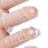 Measurements measures 2 inches to 4 inches in length. One size fits all. Material Thermoplastic Elastomers TPE. Color Clear. Note 4 sleeves included.