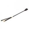 PVC Crop. Braided handle with gold accents. 21 inches overall. Handle is 6 inches. Wrist strap.
