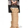 This braided jute rope has a smoother feel than twisted rope and keeps its form better. With less tendency to stretch, you can count on your knots and ties staying in place without slipping. As a plus, the ends of each strand are sealed with a metal cap so they won’t unfurl or unravel. Jute is strong, long lasting and has its own unique texture and smell. Its earthy scent and slightly rough, stimulating fibers can be pleasing to the nose and skin, creating an unparalleled rope bondage experience. As you practice shibari or kinbaku rope ties, the rope softens the more you use it and takes on the oil from your body and hands. Jute is similar to hemp and is a highly personal type of rope that some consider more intimate than synthetic fibers. This coreless, braided jute rope is less likely to slip than nylon or silk ropes and is far more durable so it won’t break as easily. Jute is one of the premium choices for riggers doing bondage suspension and a classic choice for rope enthusiasts! The feel of the braided rope against your skin sends chills down your spine. It isn’t as rough as the twisted rope; the braids give it a smoother feel, but it still rubs you the right way. As it crosses against your skin you smell the earthy scent of the jute and breathe it in. Every memory of being tied up floods your brain and you begin to relax into the hands of your capable rope Top. They run the length of the rope through their hands, unkinking any knots and checking to make sure nothing has been caught up in the fibers that would scratch or harm you. A pair of safety shears is nearby so they can free you in case of an emergency. Each tie of the rope, every knot, adds tension and pressure and you are forced to be in your body, breathing deeply and surrendering. As they pull the rope through the final knot they give it a tug, making sure it’s secure, and then use the rope to pull you into their arms. Measurements : Overall length: 50ft. Rope width: 6mm Materials : Jute Color : Brown (undyed) Note : For best results, take a few classes online or in person to understand how to safely tie up yourself or your partner. Always have a pair of safety shears nearby and be ready to use them. If you feel tingling in your fingers or toes, untie immediately