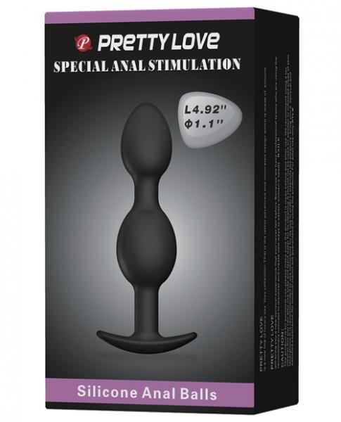 Pretty Love 4.92 inches Silicone Anal Plug with Ball Black. Silicone anal plug with ball. Silicone, 4.92 inches insertable and 1.1 inches diameter. From Pretty Love.