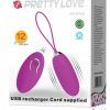 From Pretty Love, Jenny is a USB rechargeable remote control bullet with 12 vibrations functions. USB cord included. The remote control requires 1 AAA battery, not included. Dimensions Bullet vibrator is 1.1 inches wide and 2.75 inches insertable length.