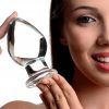 This huge plug will deliver one of a kind sensations that you will not be able to get enough of! The hypoallergenic material is non-porous, cleaning and sterilizing easily with soap and water. Compatible with all lubricant types. Includes a complementary velvet storage satchel. Measurements 4.75 inches in total length, 4.25 inches insertable. 2.5 inches in diameter at widest point. Material Borosilicate glass. Color Clear.