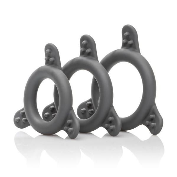 Pro Series Silicone Ring Set. Get the support you need for the ultimate thrilling orgasm. This ring is designed to get you hard and keep you there! As simple to dissemble as it is easy to use, you will find cleaning a snap. Every collection needs a good ring set. Created with ultra durable, super stretchy silicone, and designed with textured easy grip tabs for easy on and off action, this Pro Series set is the perfect fit.