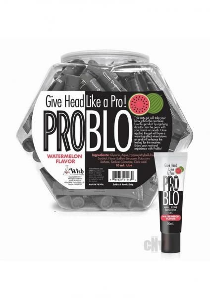 Oral Sex has never been more delicious and pleasurable! When it comes to an excellent blow job, juicy wetness is essential. There`s no shame in getting help from Pro Blo Oral Pleasure Gel. Pro Blo Pleasure Gel POP Display of 65 is available in Cupcake, Peach, Strawberry, and Watermelon. Packaged for individual retail sale, each 10 ml tube has a convenient resealable cap. Pro Blo was created to help lubricate the mouth for a slicker, wetter ride and is made in the USA.
