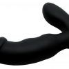 Do not limit your pleasure any longer! Explore deeper prostate massage with this premium silicone vibe. The tapered tip allows for easy insertion with a little bit of water-based lube. The curved head will press against all the right places as the entire device reverberates with the powerful buzzing! An external arm reaches upwards to apply a thrumming pressure against your perineum. Experience pleasure inside and out with a sleek, but ideally-shaped masturbation or couples toy! This device is non-porous and splash-proof for easy cleaning.Measurements: 5.75 inches in total length, 4.25 inches insertable. 1.3 inches at widest diameter.Material: Silicone, ABS.Color: Black.Note: Requires 1-AAA battery, included.