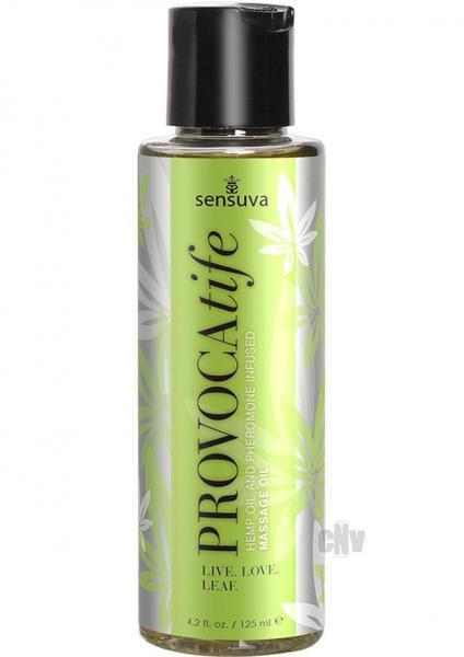 Live. Love. Leaf. Provocatife Cannabis Oil and Pheromone Infused Massage Oil. Sensuva’s newest sexy skin care line combines the healing and soothing properties of hemp seed oil with the sex attractant properties of gender friendly pheromones.
