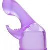 Wand Essentials does it again with a wand attachment that is sure to please! This dual pleasure wand accessory features a bulbous G-spot insertable end that zeros in on your happy spot, as well as a clitoral stimulator with a myriad of thrilling tips for added bliss. As you turn up the power on your wand, the vibrations will travel through the stimulators straight to your pleasure center. Simply slip the attachment over the top of your favorite standard size massage wand. The insertable arm and clitoral stimulator gives you a blissful endeavor that is doubly pleasing. Measurements: 5 inches in total length, 3.5 insertable, cup measures 2 inches in diameter. Material: TPR. Color: Purple. Note: Fits standard size wand massagers. Wand pictured sold separately