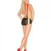 Vivace Put Out My Fire Ensemble includes booty shorts with attached suspenders and a head piece from Elegant Moments. Color Black. Ladies plus sizes, one size queen. Bust 40 inches to 44 inches. D/DD Cups. Waist 40 inches to 44 inches. Hips 44 inches to 50 inches. Dress sizes 14 to 18.
